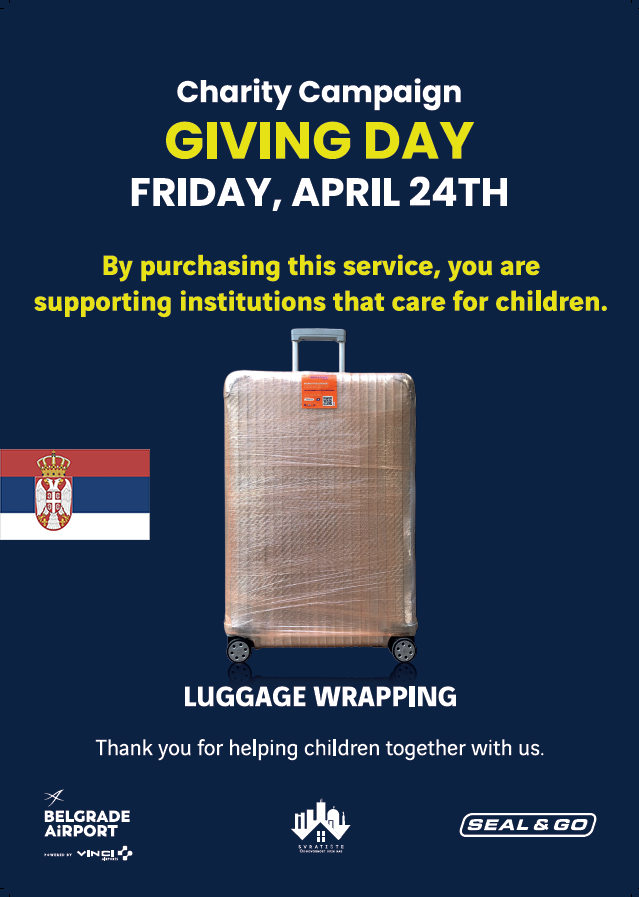 On this day, a percentage of the luggage wrapping proceeds of Seal & Go Serbia is donated to a shelter for children without parental care. By purchasing a luggage wrapping on April 24, you are directly supporting this charitable initiative and helping us make a difference together. Giving Day is a wonderful reminder of the power of collective effort.
